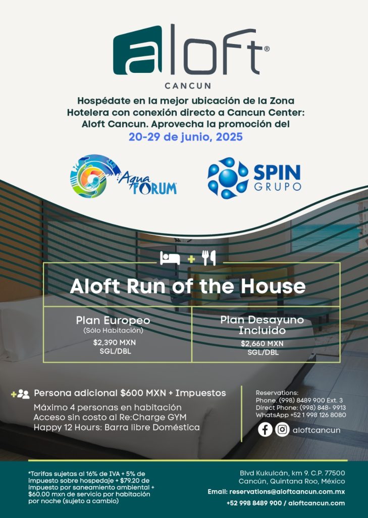 Para hacer tu experiencia en Aqua Forum 2025 aún más cómoda, hemos establecido un convenio especial con aloft, ubicado al lado del centro de convenciones en Cancún, Quintana Roo.